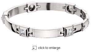 “Argent” @ 1/4' wide represents a stunning combination of genuine "Swarovski" crystals accenting the exterior & one 99.99% pure Japanese germanium stone embedded within the interior design.
