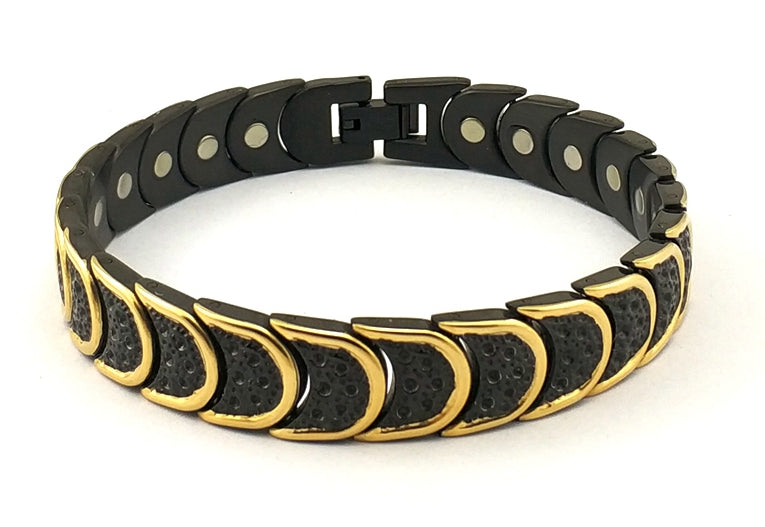 Our growing "Seashell Collection" would not be complete without this "Stunning" addition we lovingly call "Black Gold". This durable stainless steel magnetic bracelet has eighteen magnets and twenty one magnets respectively per size at 3500 gauss per magnet. We use as you may know permanent laser point neodymium rare earth magnets which will retain their strength over many many years.