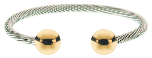 Stainless Steel cable design with 3800 gauss, permanent magnets including three microns of 18K gold plated polished stainless steel spheres.