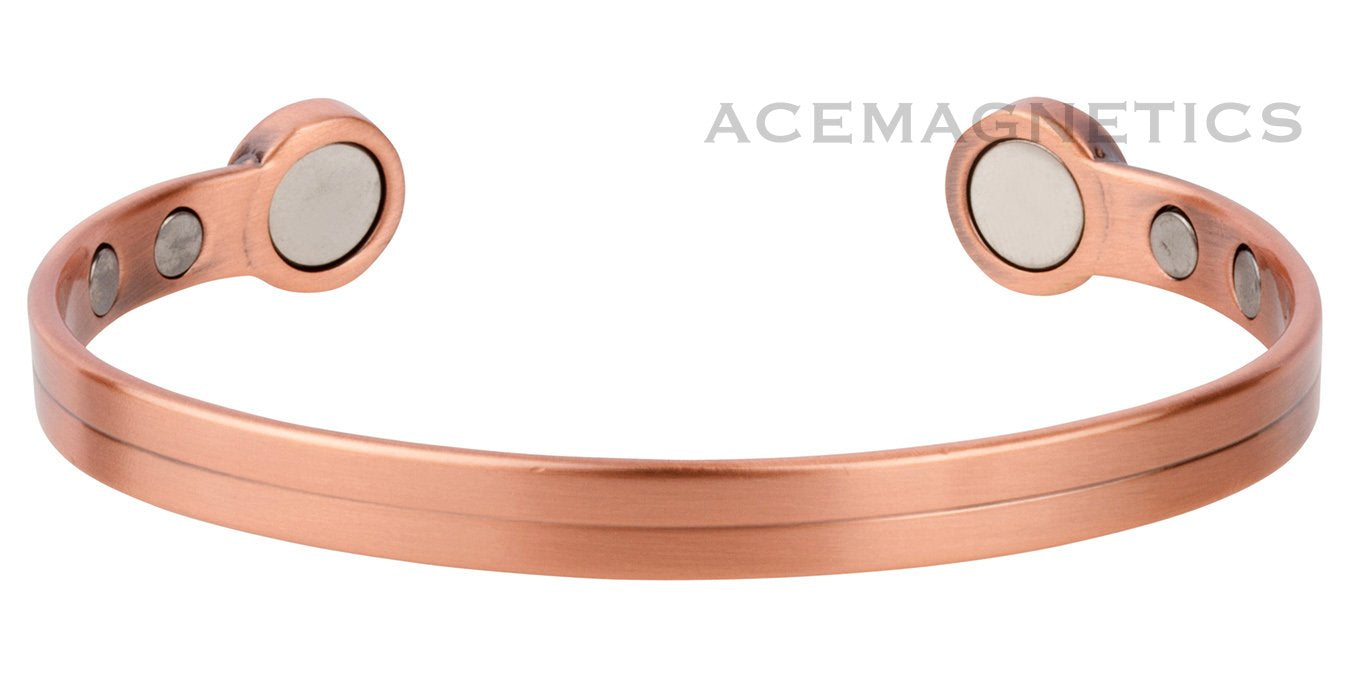 Sometimes you have play in the minor league and sometimes you get to step it up. With Our new Powerful Copper Bracelet Design that we have included two laser point neodymium north facing magnets at a lofty 4500 Gauss each & Four more at 3300 Gauss magnets you know you’ve hit the big leagues.