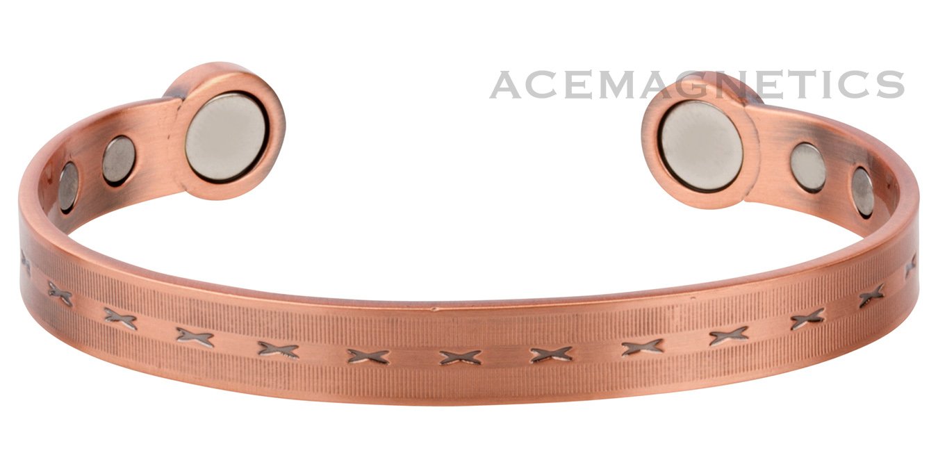 Sometimes you have play in the minor league and sometimes you get to step it up. With Our new Powerful Copper Bracelet Design that we have included two laser point neodymium north facing magnets at a lofty 4500 Gauss each & Four more at 3300 Gauss magnets you know you’ve hit the big leagues.
