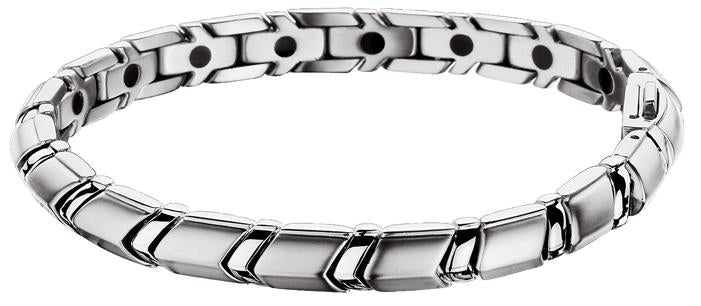 Although this style is highly fashionable we have not skimped on our trademark use of north facing rare earth neodymium permanent magnets at 2800 Gauss strength in each & every link.