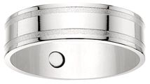 Our titanium ring is embedded w/three 2000 gauss magnets strategically spaced within the inner circumference of this band. Titanium is a superior metal for jewelry simply because it will never tarnish, and it is 100% compatible with the human body, not producing allergic reactions, skin irritations or discoloration of any sort, making it the ideal metal for those with sensitive skin. Titanium is also a high performance metal that NASA uses in its spacecraft due to its super strength, and ultra-light weight properties.