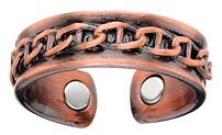 Enjoy this copper "chain” style" magnetic ring with two 1500 gauss laser point neodymium magnets embedded within this unique yet classic look. Can we interest you in a magnetic finger ring or a magnetic toe ring? Don’t really want to make complicated shopping decisions today? At ten dollars a piece how can you not pick up two of these? As always you can depend on AceMagnetics.com for new designs with understated flair and style at an affordable price. Enjoy this copper chain style magnetic ring for yourself or as a gift for a loved one. The magnets within this bracelet will not lose their strength over time that is the benefit of “neodymium” magnets FYI.
