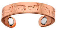 Foot prints in time magnetic copper toe or finger ring for all those who never want to walk alone. Two 1500 gauss neodymium unipole and permanent magnets are embedded in this ever popular design. How does that song go?? One set of footprints in the sand .... Lord you promised you'd hold my hand..... Purchase two rings and gift one to your best friend and know that together you walk as one. Wow - was that too deep?